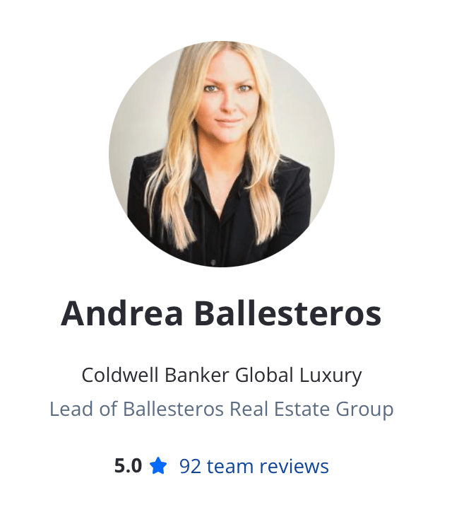 Andrea is supported by a responsive, hands-on team that shares her standards. Whether it’s hosting additional open houses or being available on holidays, the Ballesteros Real Estate Group shows up.
